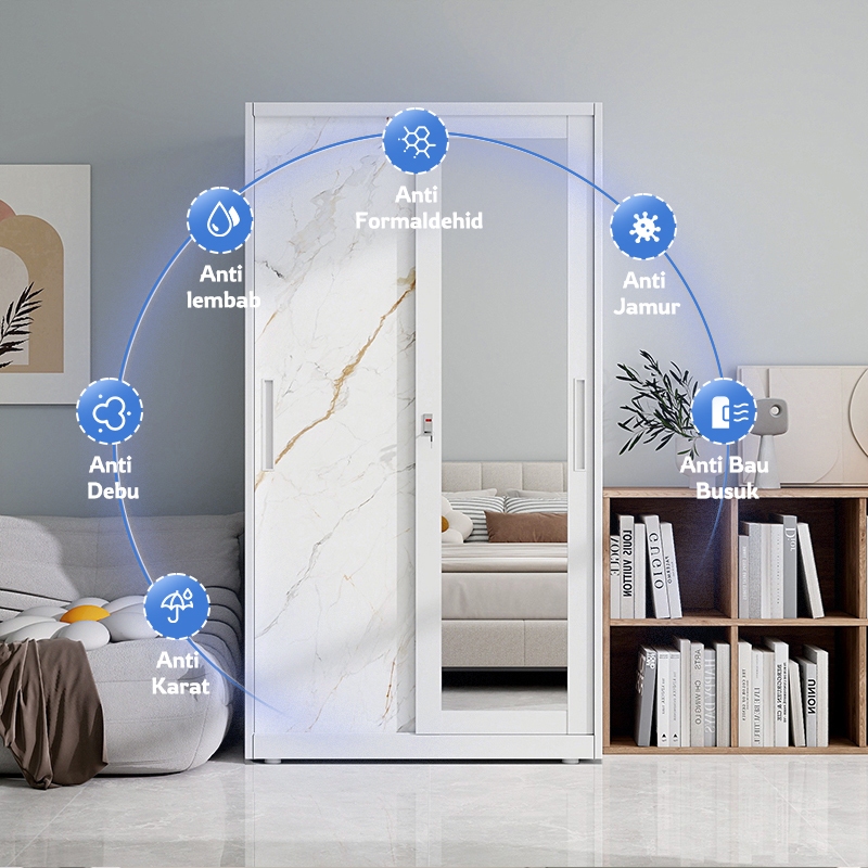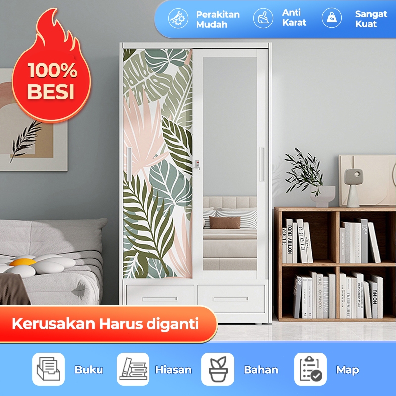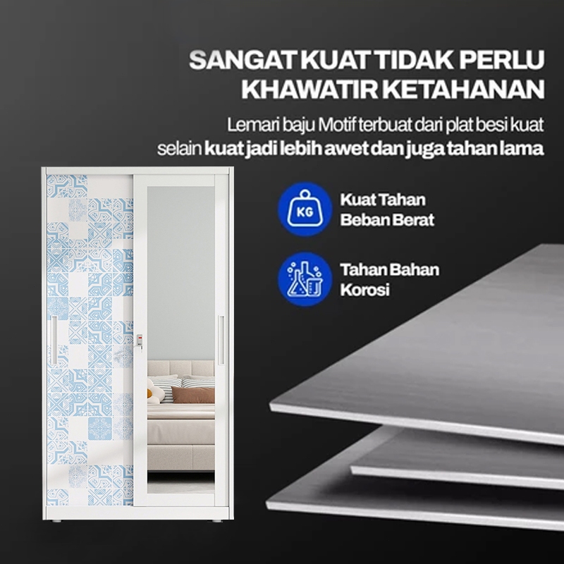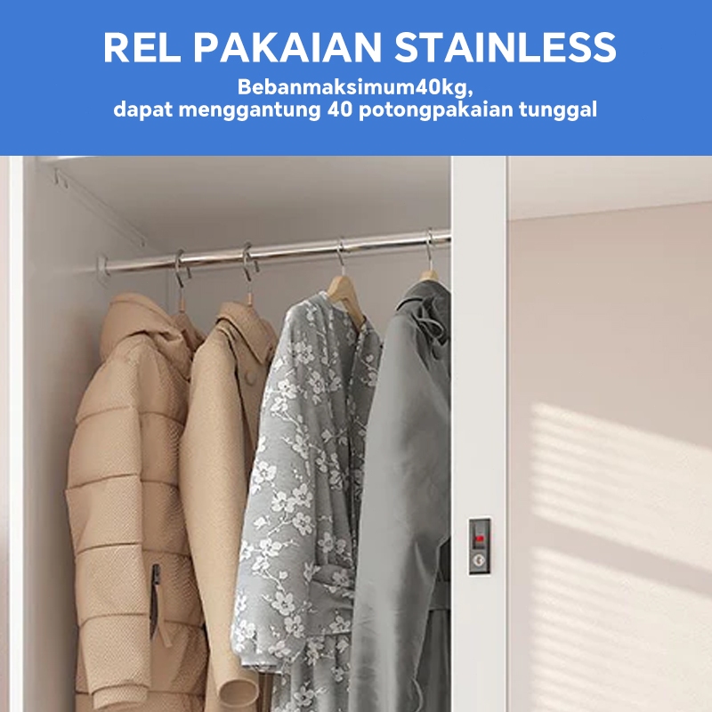 Lemari Pakaian Besi Sliding 2/3 Pintu | 90/118/160 CM 1 Batang Rak Baju
