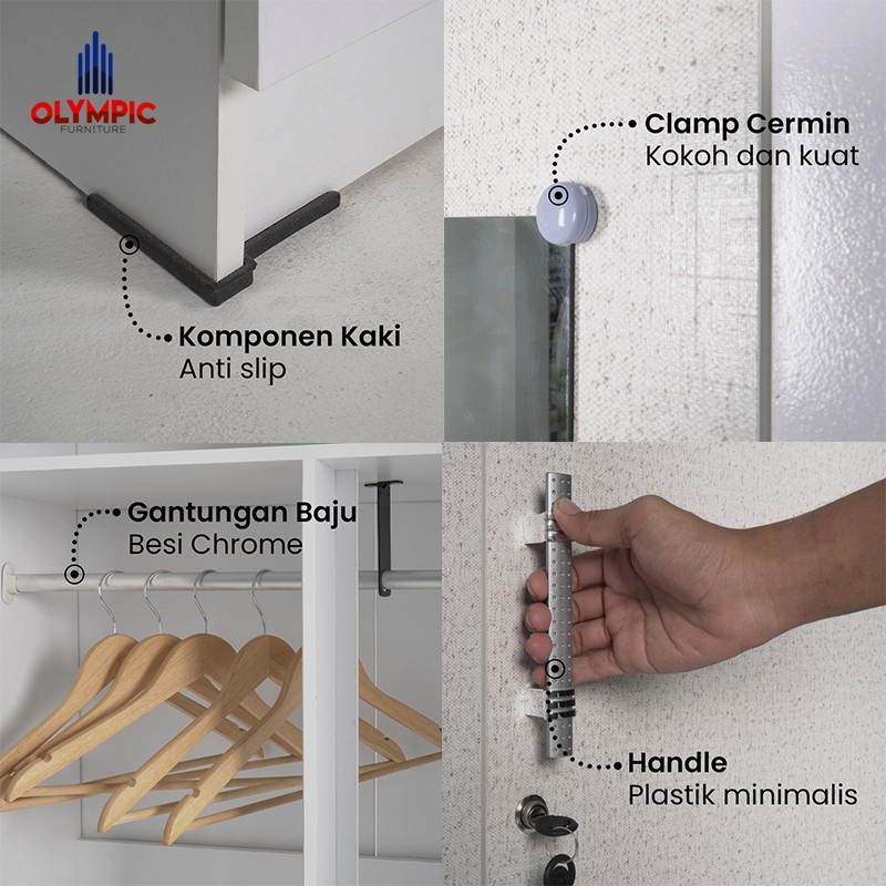 Lemari Pakaian 3 Pintu Kaca Beige/White Dengan Cermin