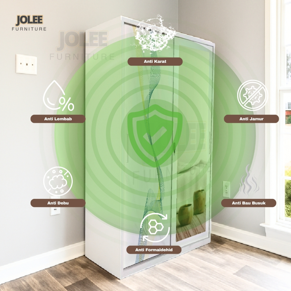JOLEE-Lemari pakaia multi pintu Lemari Pakaian Besi Full Pintu ganda biasa Pintu Sliding Cermin