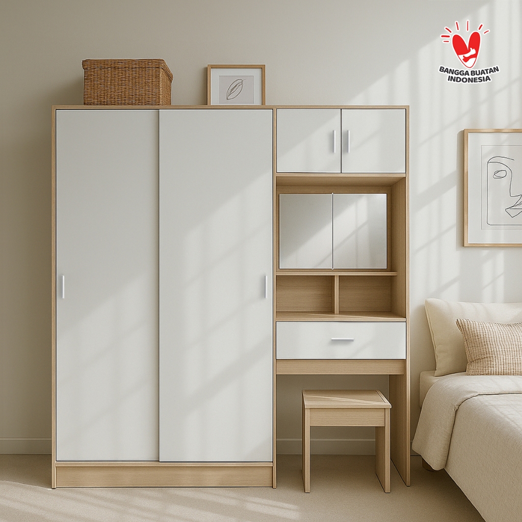 Casaloma Furniture Lemari Sliding Paket Meja Rias Minimalis Modern