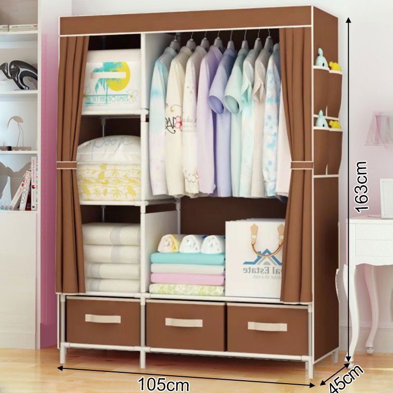 Lemari Pakaian Kain Portable Dengan Ritsleting Gantungan Anti Debu Serbaguna Hemat Tempat Lemari Jumbo Lemari Minimalis Kost