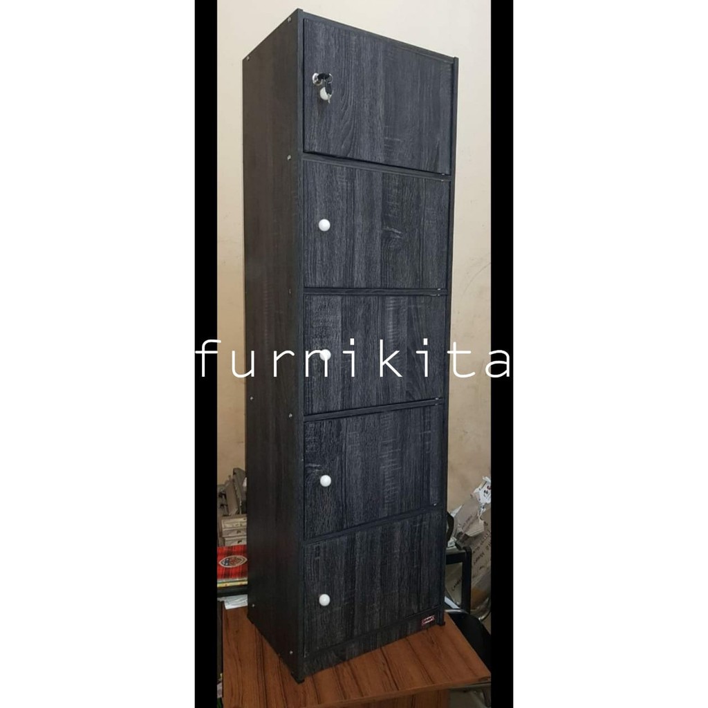 LEMARI RAK BUKU SERBAGUNA SUSUN 5 KAYU DENGAN KUNCI