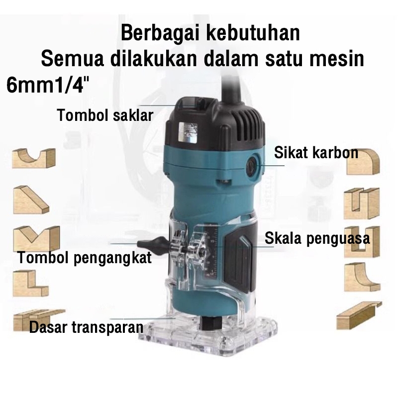 Reaim Wood Trimmer 550W 1/4" 6 MM Mesin Profil Router Trimmer Kayu - Reaim XBJ001
