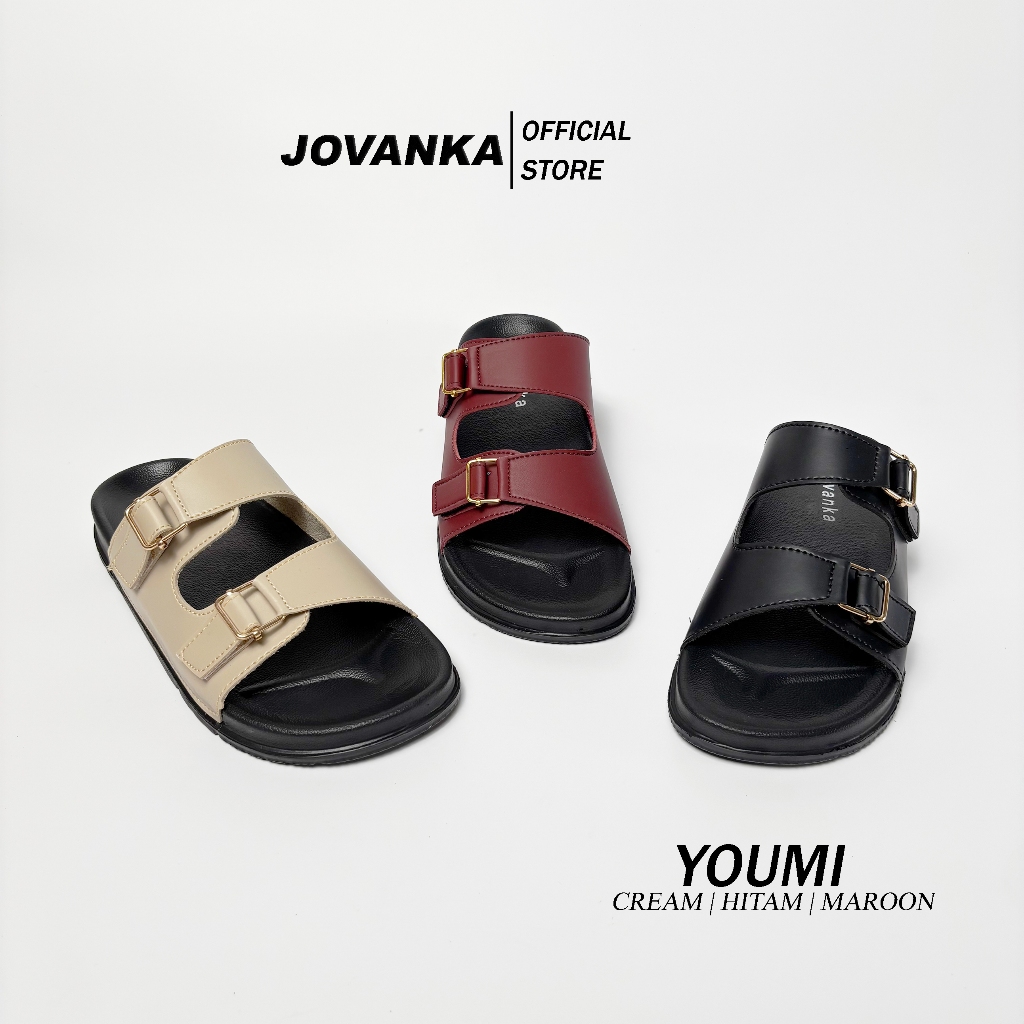 Jovanka Youmi - Sandal Wanita Platform Casual Sendal Selop Wanita Model Kekinian Cantik Elegan - Gesper Gold Perekat Akt