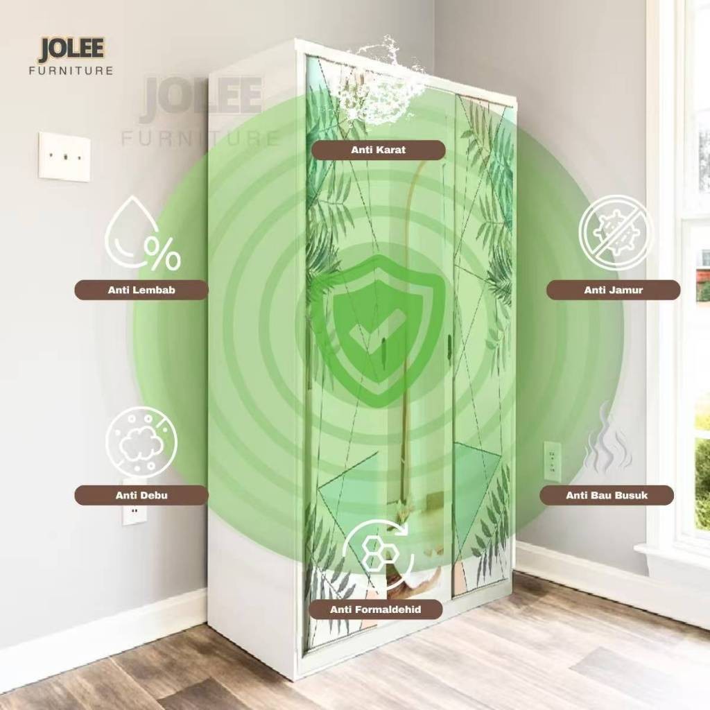 JOLEE-Lemari Pakaian Besi 3 Pintu Jumbo - 150cm 2 Laci 2 Batang Rak Baju