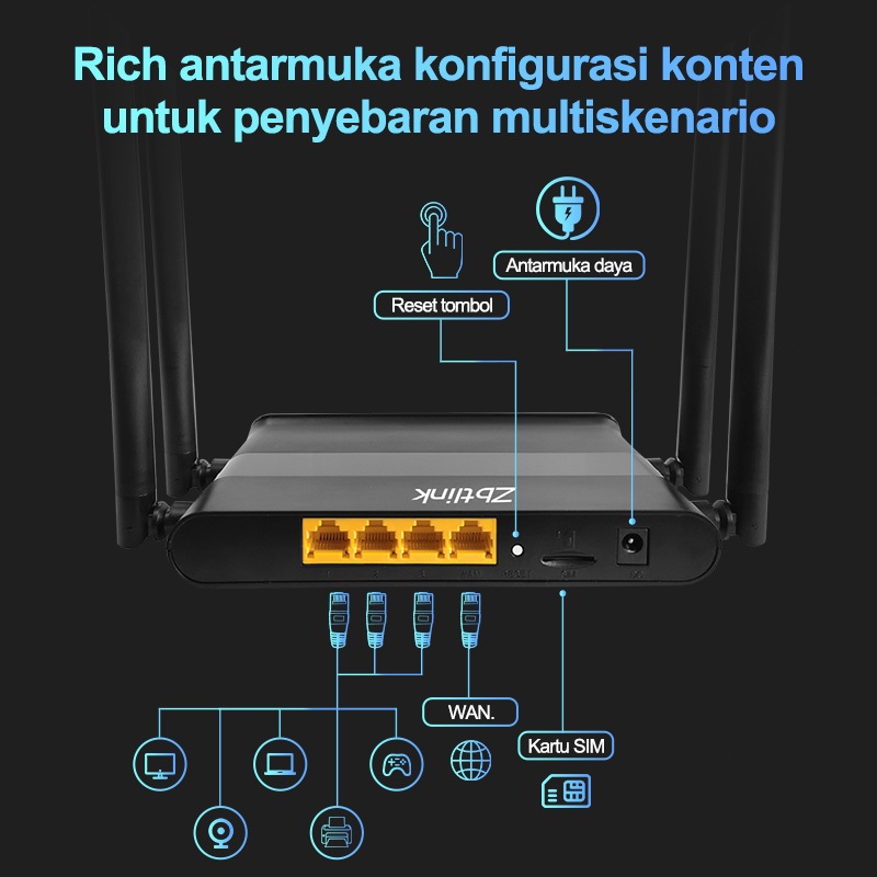 ZBTlink Router 4G 500Mbps LTE WiFi Portable Slot SIM & LAN, Praktis Instal Dukungan Garansi Resmi