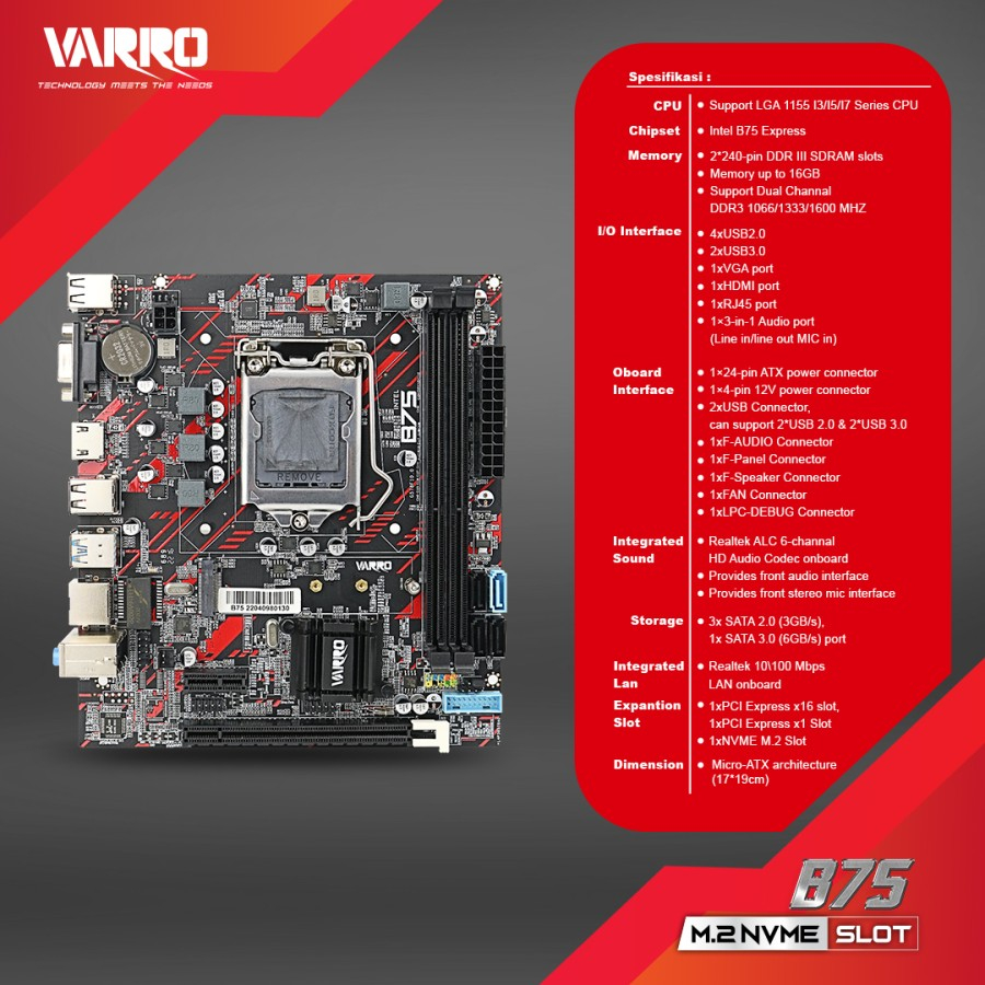 Motherboard Mobo mainboard VARRO H61 PLUS / B75 (USB 3.0) NVME SOCKET 1155
