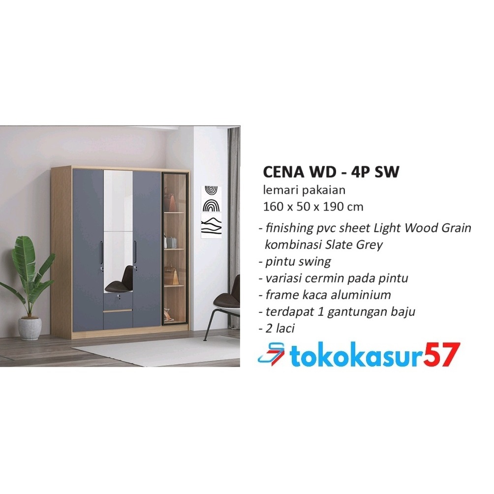 Lemari Pakaian 4 Pintu / Wardrobes 160x190x50 cm CENA WD 4D - Sanfelo