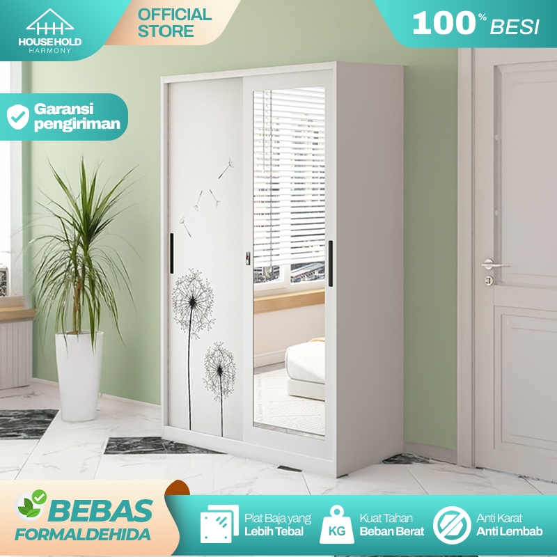 Lemari Besi Sliding 2 Pintu Lemari Pakaian Besi Lemari Baju Minimalis Motif Plat Besi Anti Karat