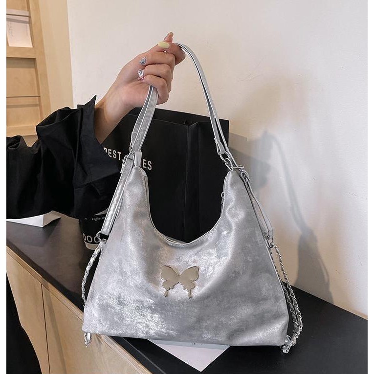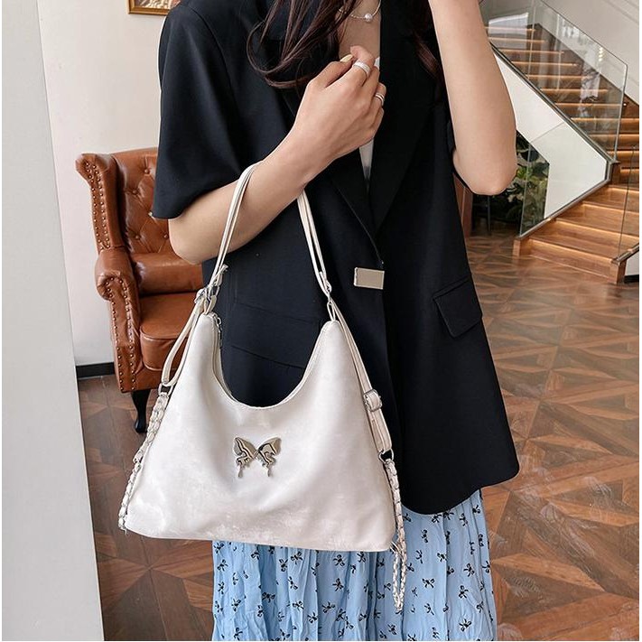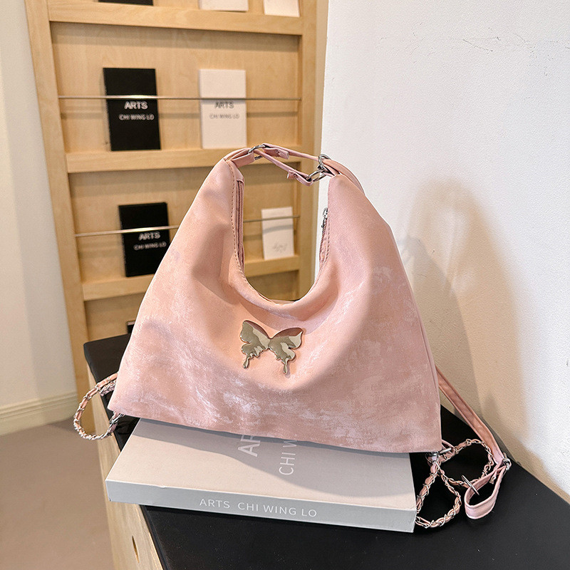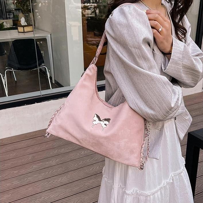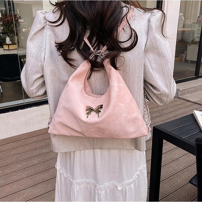 Tas Selempang & Bahu Wanita Silang Serbaguna Warna Gradient Beludru Perasaan Pita Kupu-kupu Tas Tote Wanita 2024 Model B