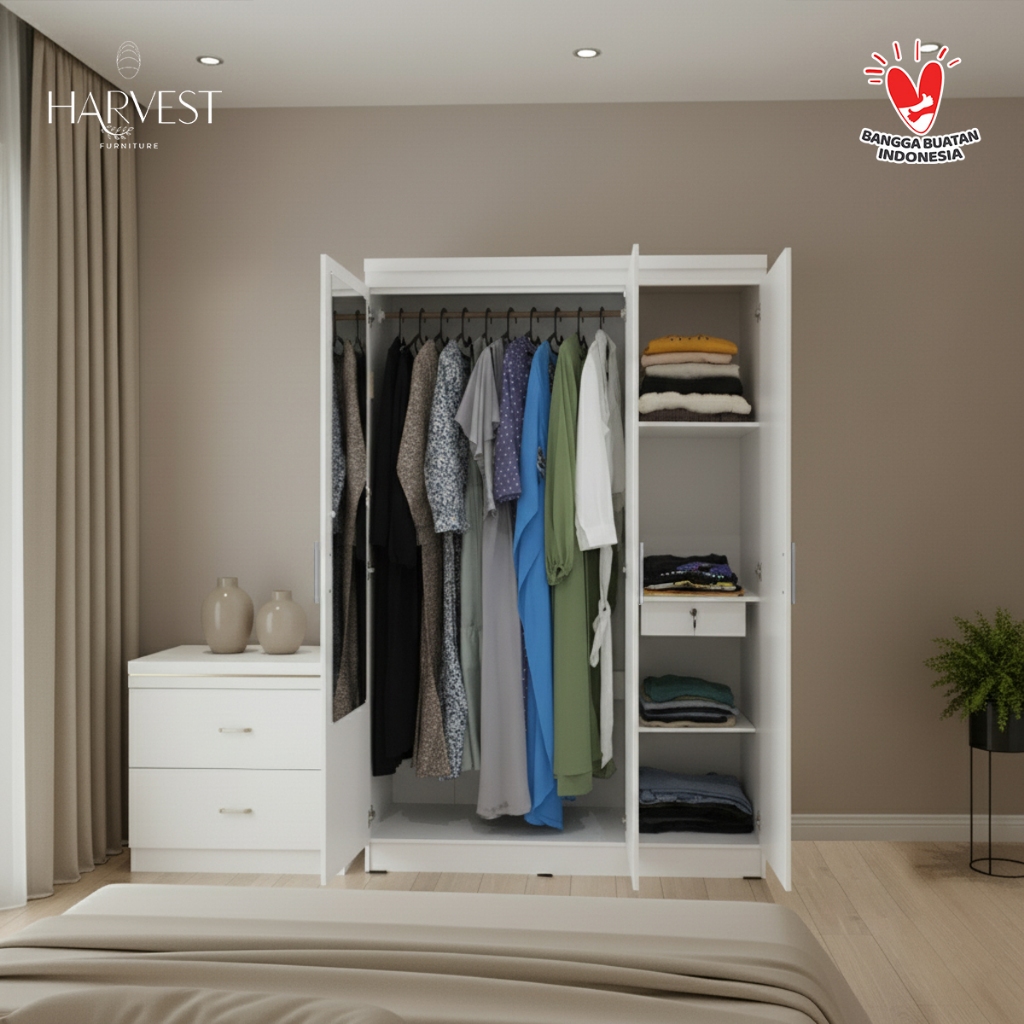 Harvest Furniture Lemari Baju Pakaian 3 Pintu GAMIS Aesthetic Estetik