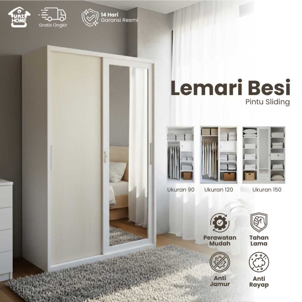 Uni Home Lemari Pakaian Besi Sliding 2 Pintu 3 Pintu Jumbo Premium– Desain Minimalis Modern