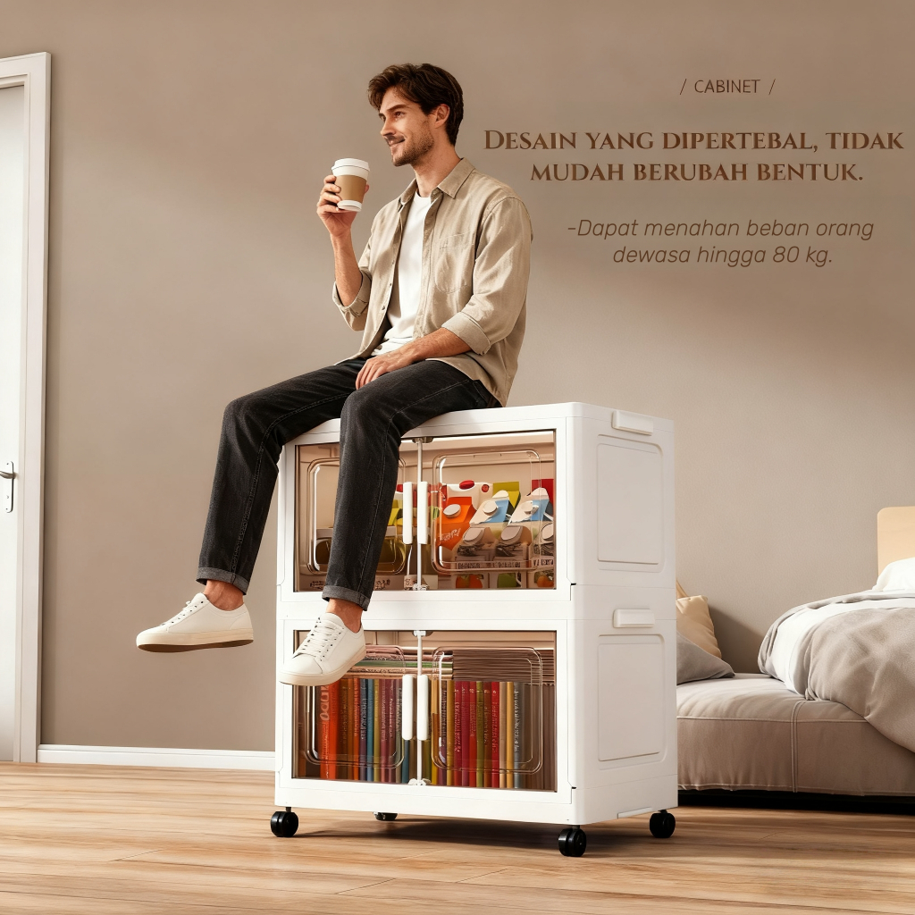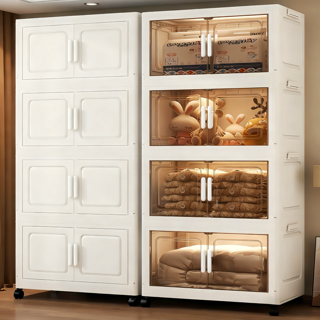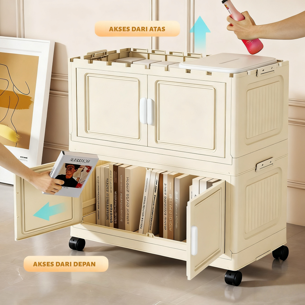 EH [44 cm Besar] Lemari Plastik Lipat 2-5 Susun + Roda Rak Serbaguna Wardrobe Storage Aesthetic untuk Lemari Baju