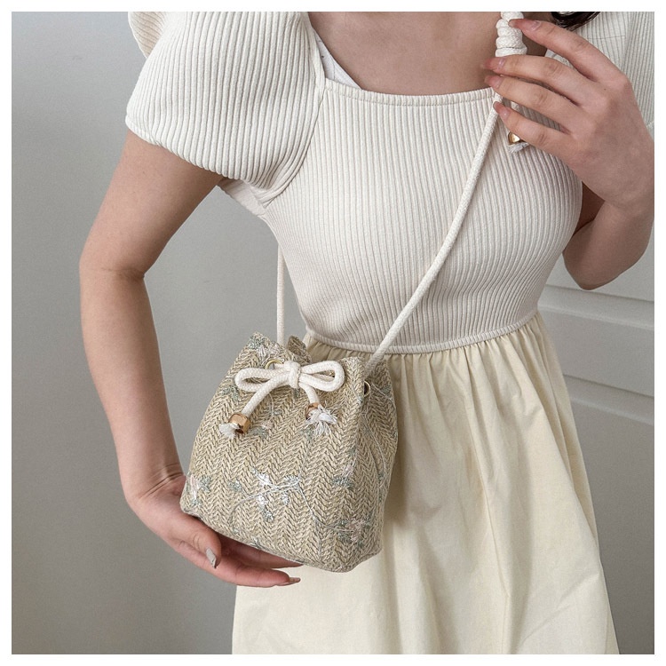 BAO117 Tas Selempang & Bahu Wanita Tren Tas Anyaman Renda Rotan Keranjang Air Tas Keranjang Bahu Murah Gratis Ongkir