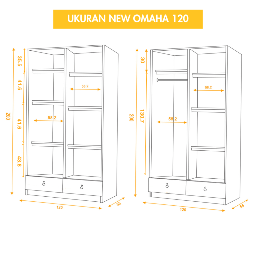 KIRANA Omaha - Lemari Pakaian Kayu 2 Pintu Sliding / Geser Wardrobe Putih Modern Minimalis