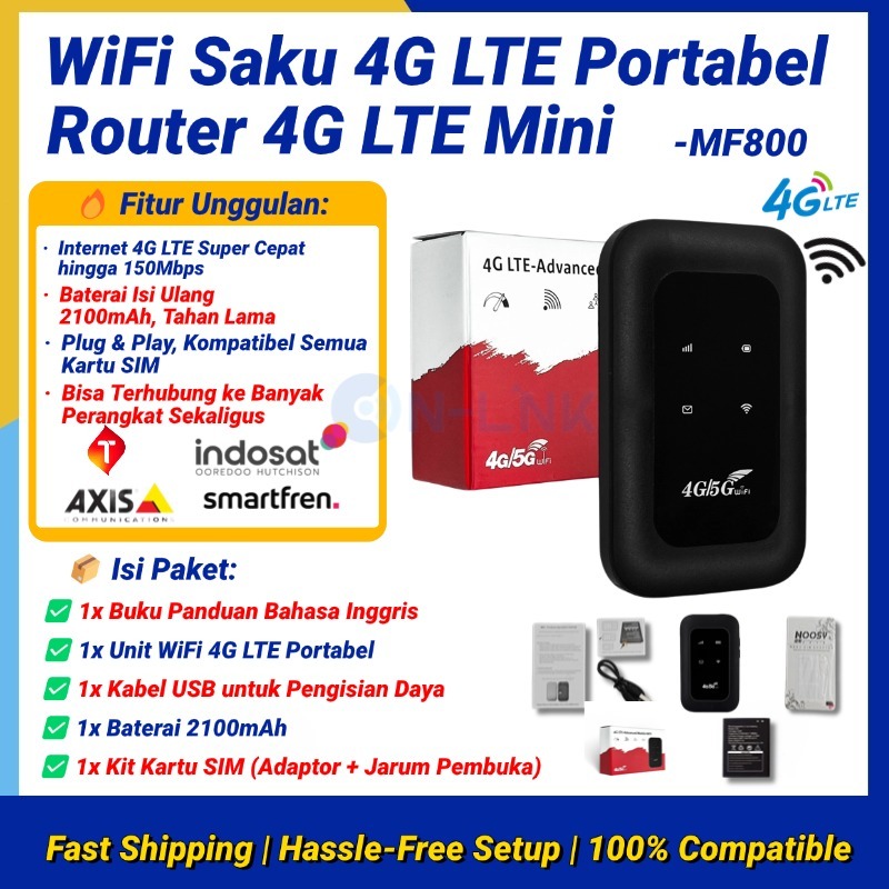 4G LTE Pocket WiFi Router 150Mbps Hotspot Modem Portabel Universal SIM Bisa Pakai Semua Operator + Adapter