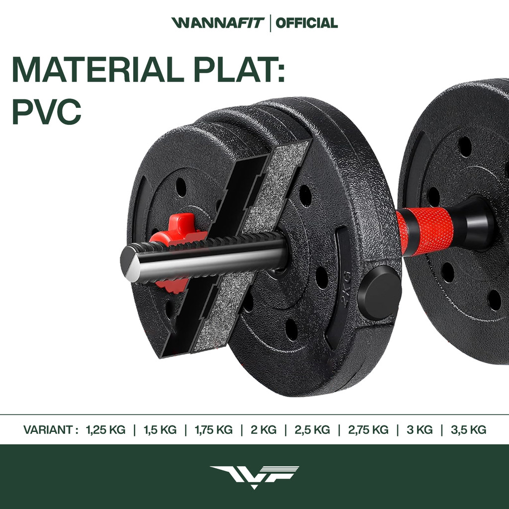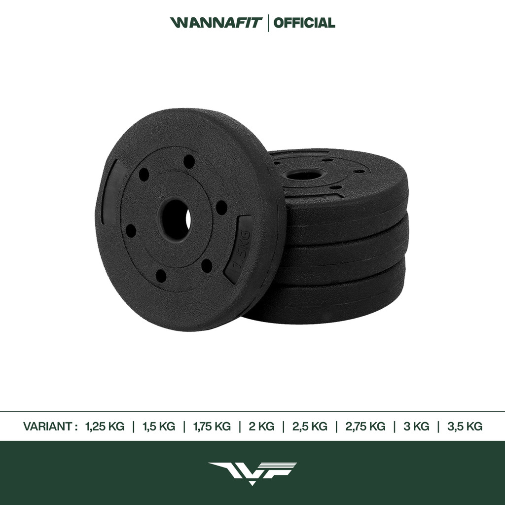 WANNAFIT Plat Dumbbell / Barbell PVC Plate Dumbel Barbel 2,5kg 3kg 3,5kg 5kg 7,5kg 10kg 15kg 20kg Alat Latihan Beban Mur