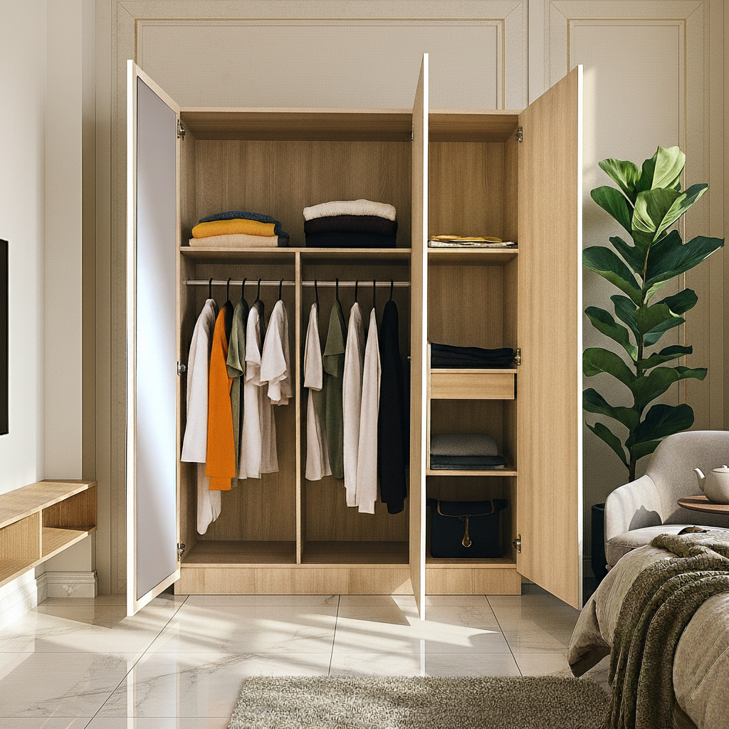 Homewell Lemari Pakaian/Lemari Baju 3 Pintu Modern Minimalis Estetik Murah