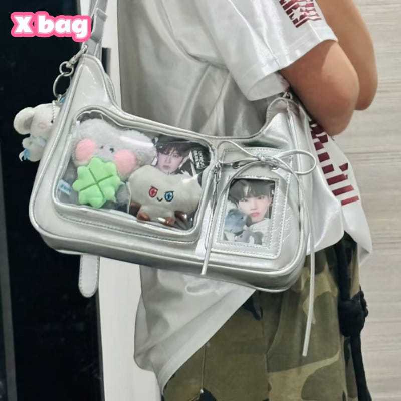 Tas Shoulderbag Wanita Front Pocket Transparan -- Tas PVC Transparan Kpop Gaya Model Wanita Korea Murah Gratis Ongkir