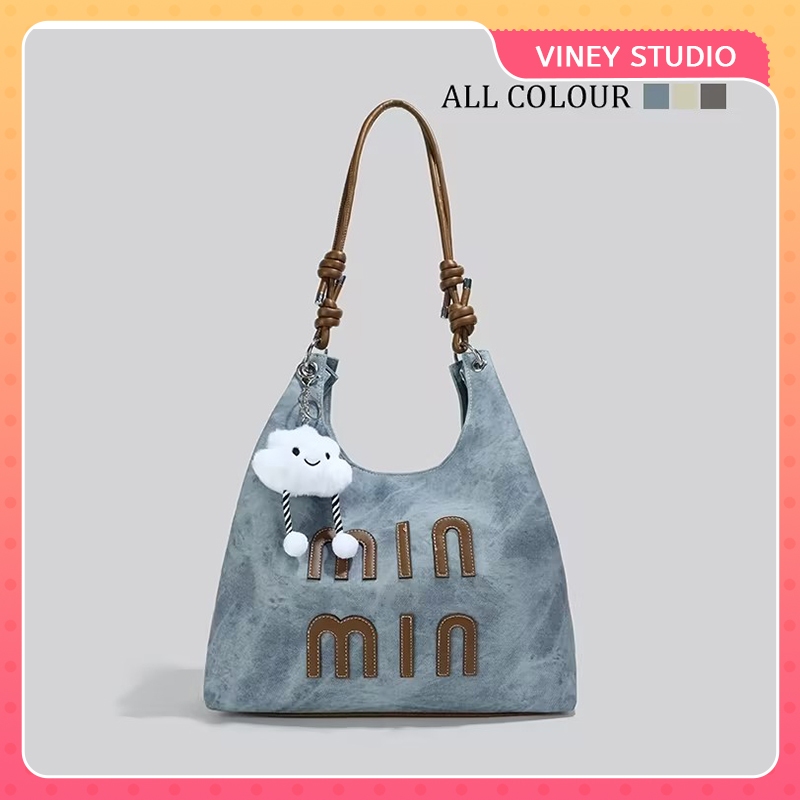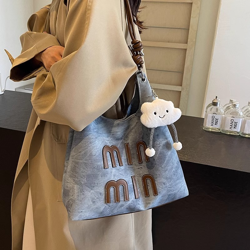 Tas Retro Kapasitas Besar Tas Wanita Cetak Alfabet Cetak Tote Serut Bahu Tas Ketiak Kanvas Selempang Murah Gratis Ongkir
