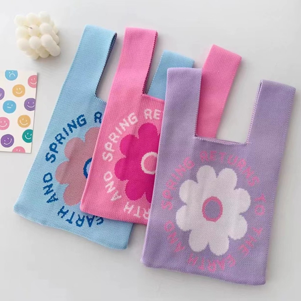 Tas Rajut Wanita Tote Bahu Portabel Ins Tren Tas Tangan Berukuran Besar Hadiah Rajut Korea / DMTS019 Murah Gratis Ongkir