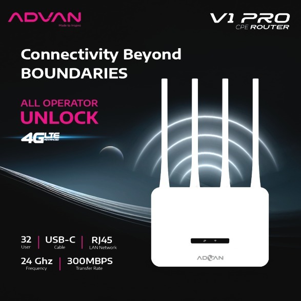 ADVAN CPE V1 Pro Modem + Wifi + Router + 4G LTE unlock all operator + Kartu Perdana ByU