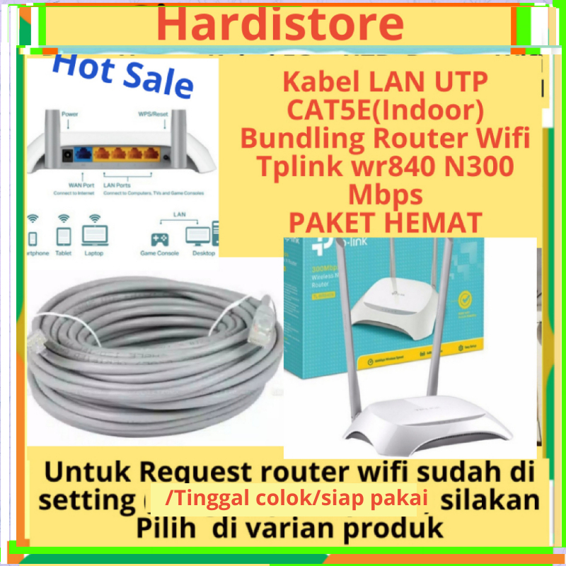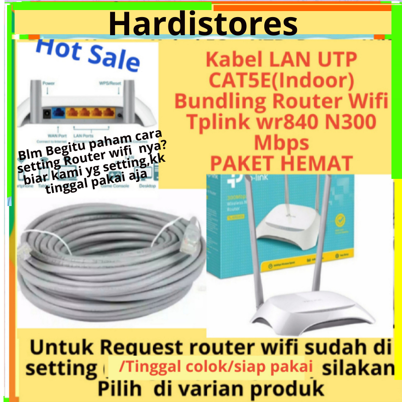 Kabel WIFI Cat5e Kabel LAN UTP Indoor 5m 10m 15m 20m 25m 30m 35m 40m 45m 50m 60m 70m 75m 80m Bundling Router wifi Tplink Wr 840N 300Mbps Paket Hemat Siap pakai Bergaransi