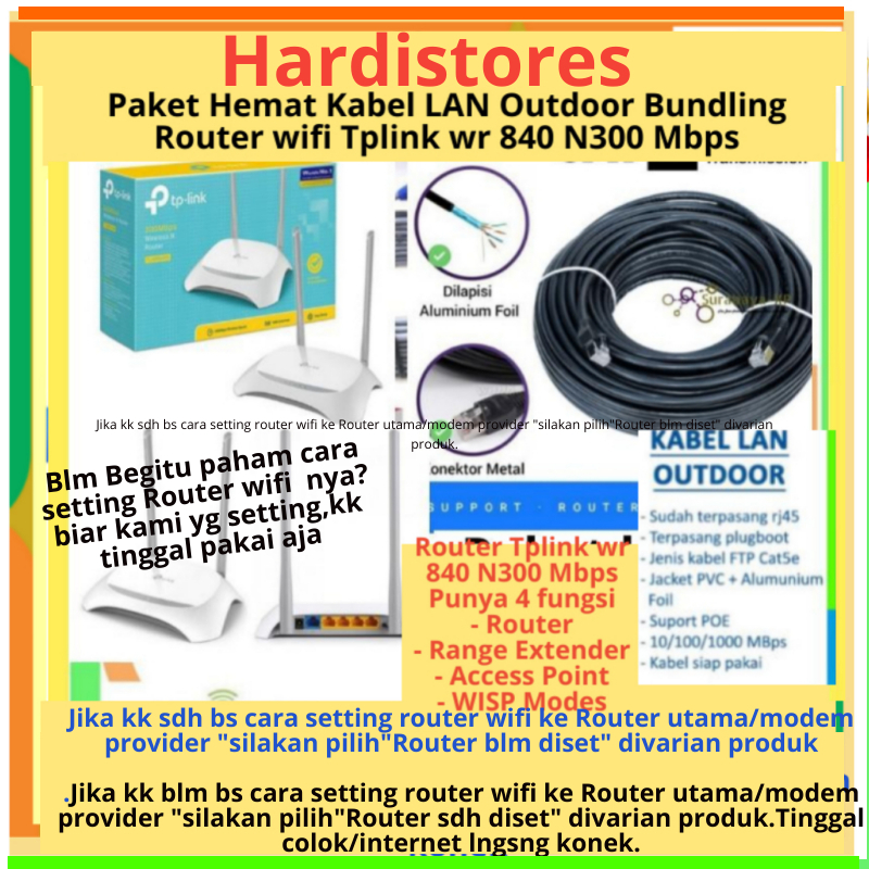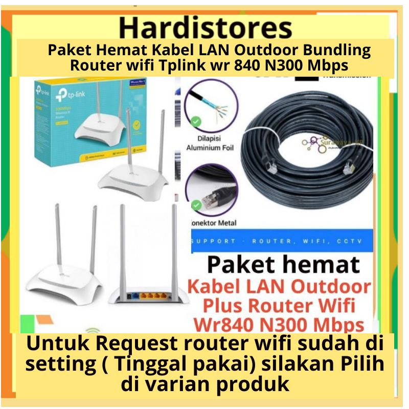 Kabel WIFI Cat5e Kabel LAN FTP Outdoor 5m 10m 15m 20m 25m 30m 35m 40m 45m 50m 60m 70m 75m 80m Bundling Router Wifi TpLink TL-WR 840N 300 Mbps Paket Hemat Siap Pakai Bergaransi