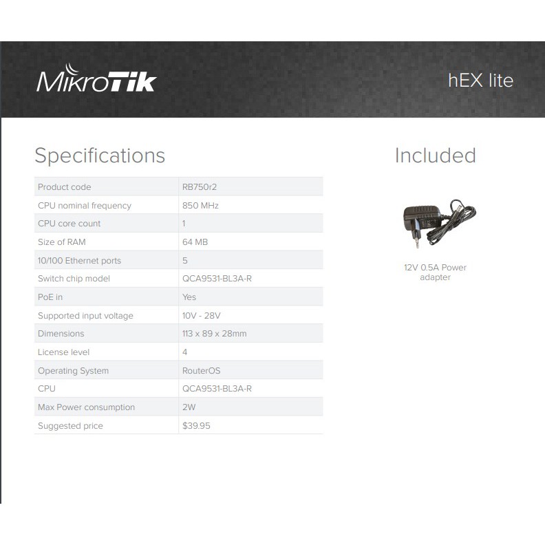 MikroTik hEX Lite RB750r2 Router 850MHz 5 Port