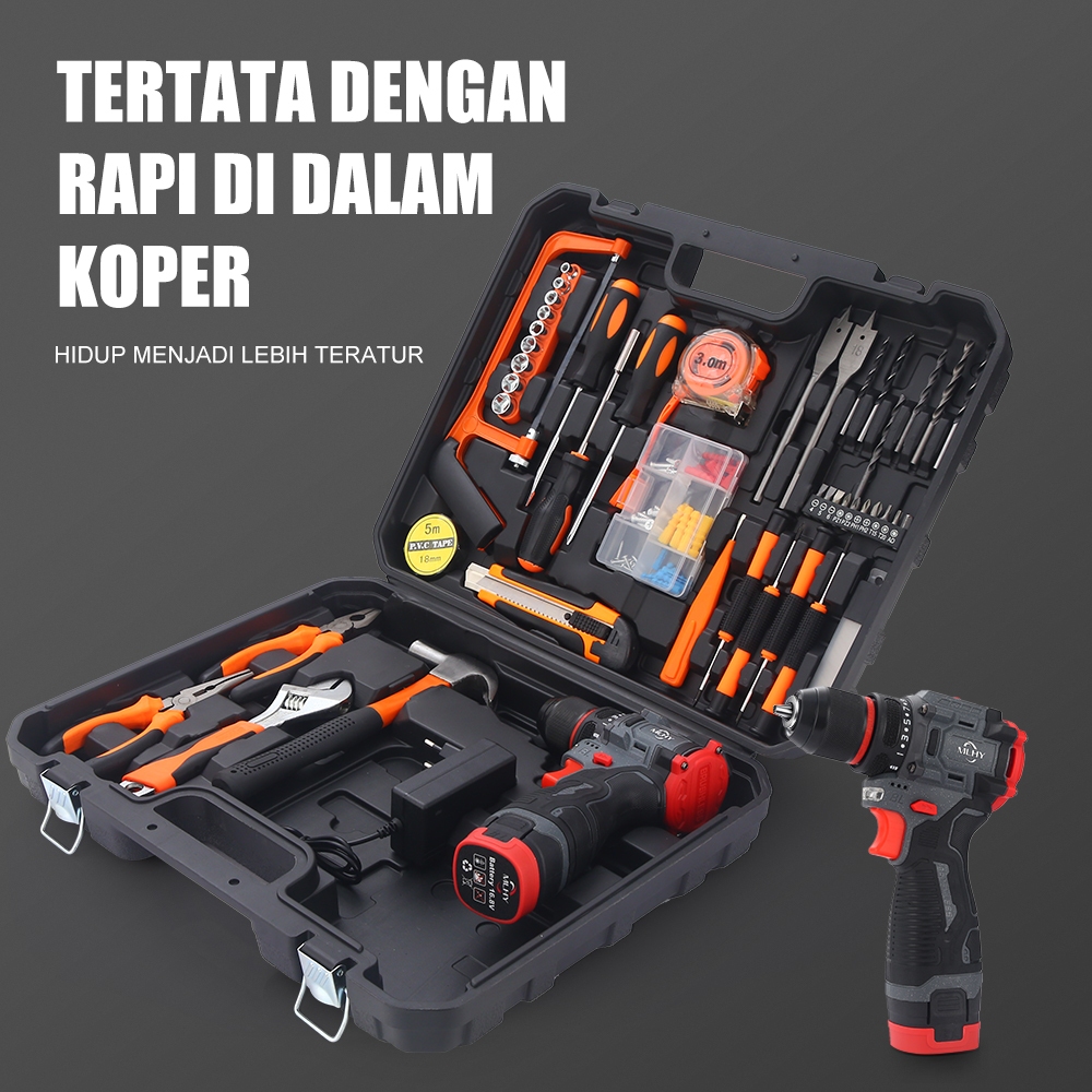 MLHY Toolkit Set Bor 102Pcs 16.8v Bor Listrik Cordless Tang Obeng Palu Kunci Pas Toolkit Alat Rumah brushelss bor Kunci Sok Kunci Shock
