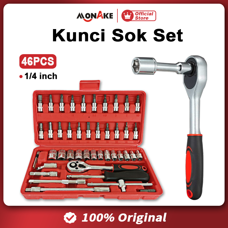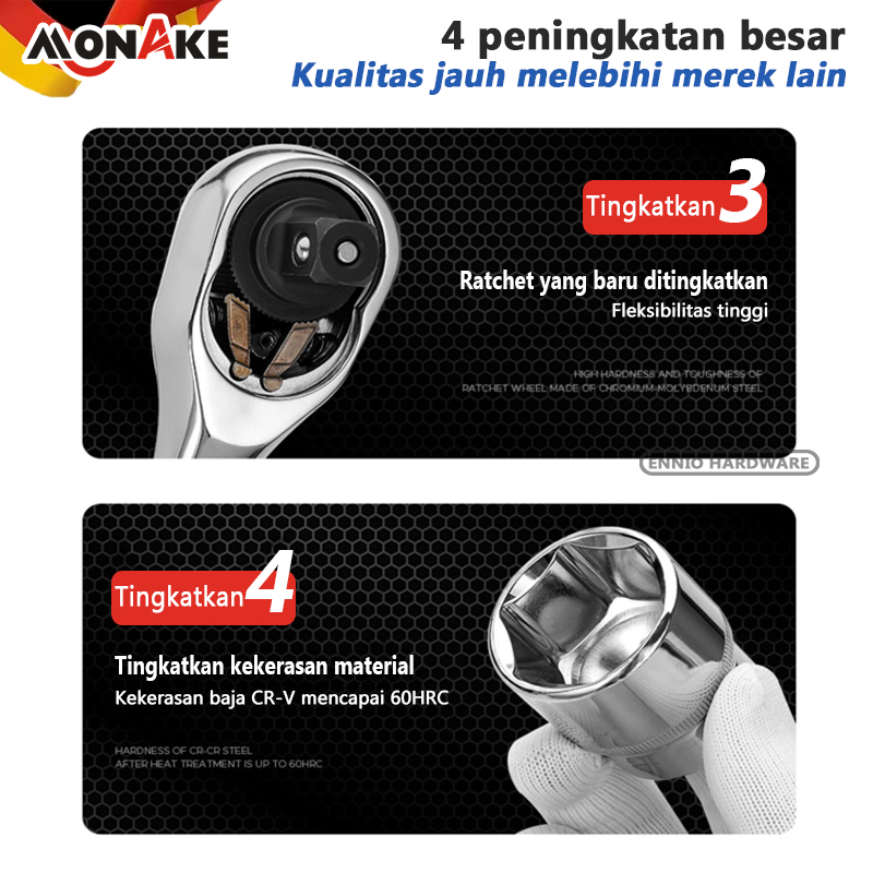 MONAKE Alat Jerman Kunci Sok Set 12/32/37/46/53/61/82/94 pcs Set Lengkap Kunci Mata Sok 1/2'' and 1/4'' inch Set Potong Kunci Pas Alat Set