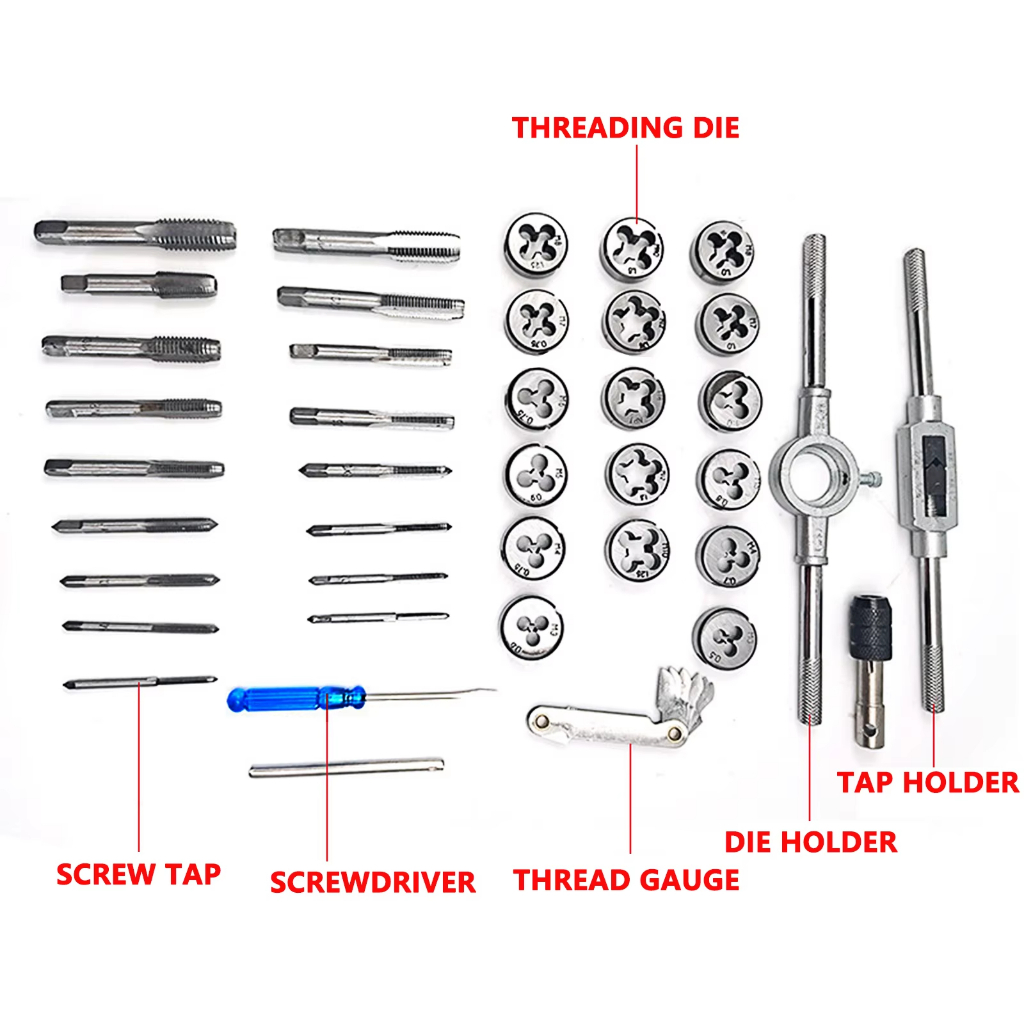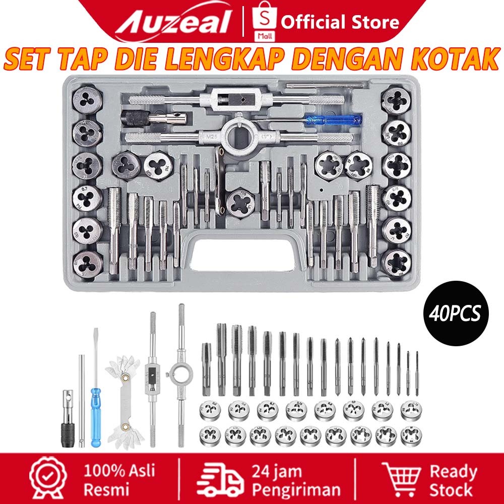 Auzeal Tap And Die Set Metric 40Pcs M3-M12 - Set Ulir Kasar & Halus, Kit Lengkap Dengan Handle Dan Kotak Penyimpanan