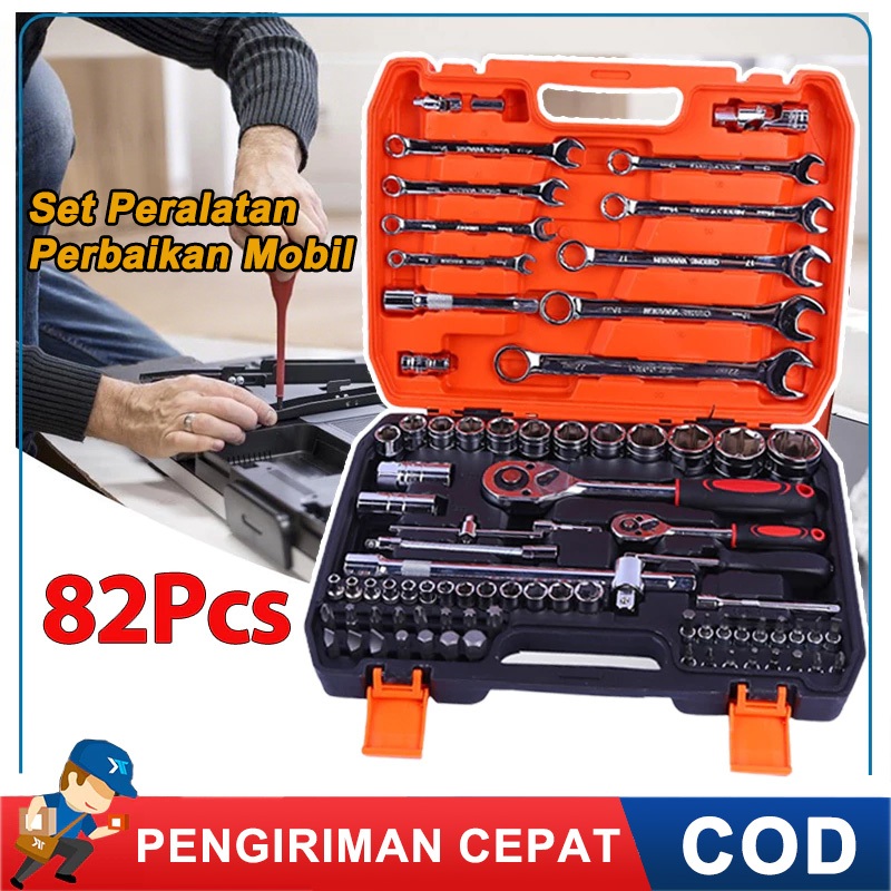 82pcs Tool Kit Kunci Shock / Alat Perbaikan Mobil Profesional / kunci pas kunci shock set obeng