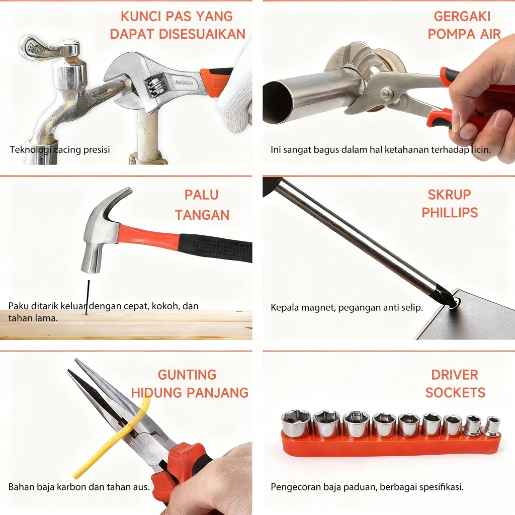 Reaim Tool kit Set Lengkap 82 Pcs Set Kunci Set Lengkap Tool Box Set Lengkap Mekanik Rumah Tangga