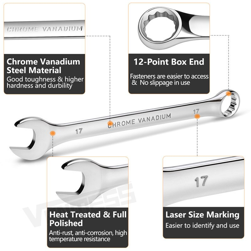 ECOSEN steel High hardness Kunci Ring Pas 8-24mm 14 pcsSpanner set Full Set Kunci Ring Pas Perkakas