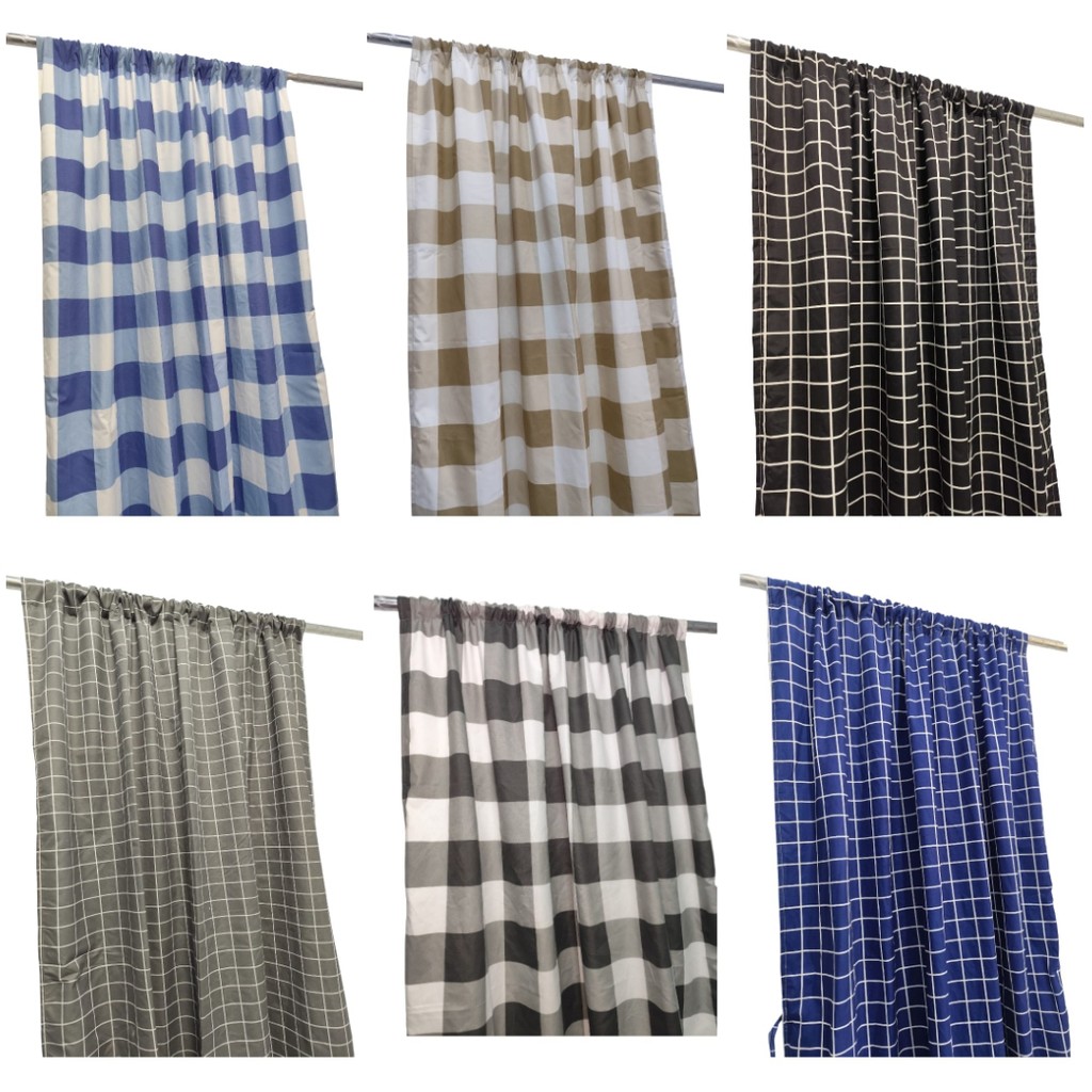 Gorden Serut Motif Kotak Estetik Minimalis Katun Halus Ukuran Pintu & Jendela