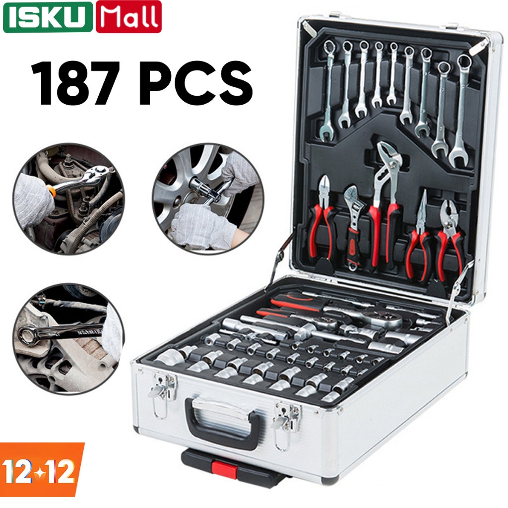 ISKU Tool kit Set alat Kunci Sok set 187pcs/121pcs/82pcs kunci shock set Rumah Koper Alat Bengkel Perkakas Lengkap kunci pas Set Alat Perbaikan