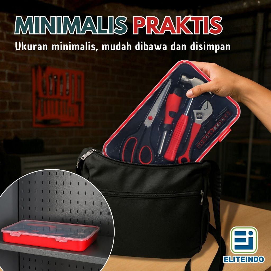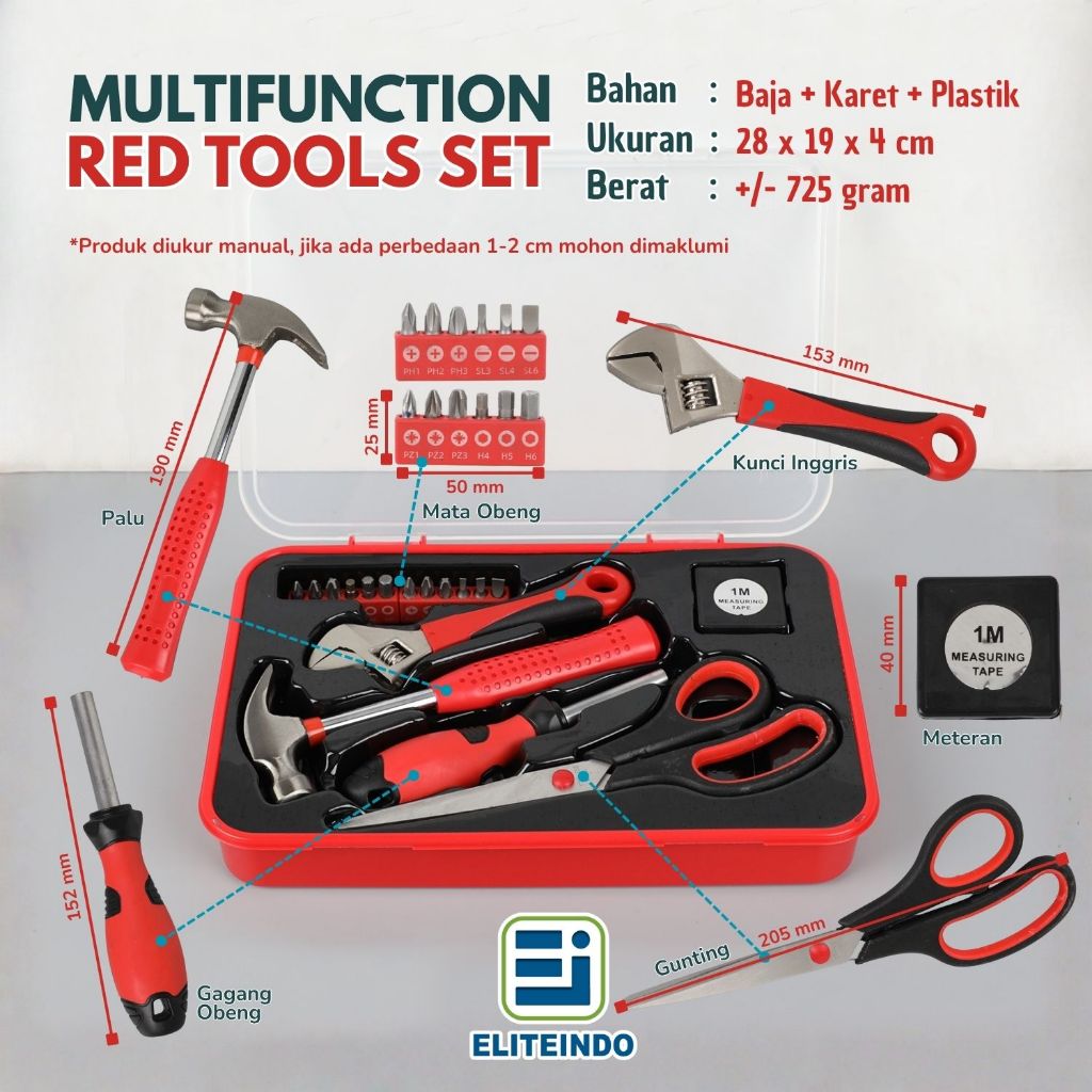 ELITEINDO Multifunction Red Tools Set Alat Bengkel Lengkap Palu, Obeng, Kunci Inggris HYY-917-2