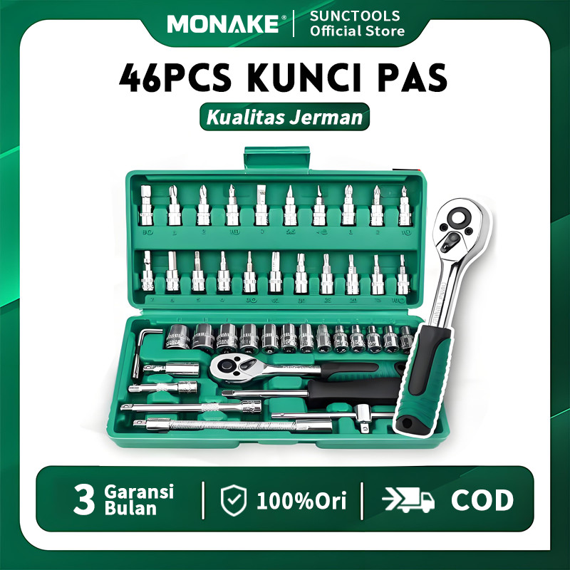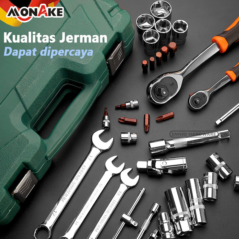 JERMAN MONAKE Top Kunci Sok Set 1/2'' and 1/4'' inch 37/32/12pcs Set Set Lengkap Kunci Mata Sok Potong Kunci Pas Alat Set Cincin 24 gigi