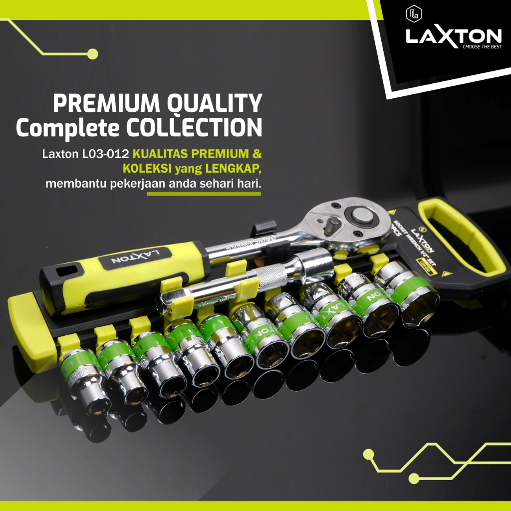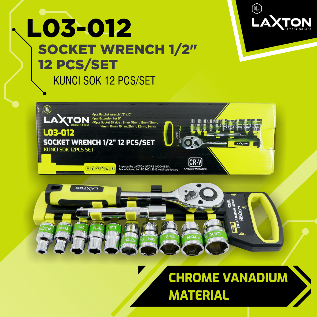 LAXTON Kunci sok set CR-V 12 pcs 1/2" alat perkakas motor L03-012