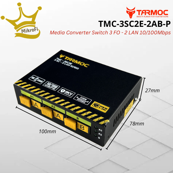 Tarmoc TMC-3SC2E-2AB-P | Media Converter Switch 3FO 2LAN / 3 FO 2 LAN 10/100Mbps POE IN 5-24 Volt | 3SC 2LAN / 3 SC 2 LAN 10/100 Mbps