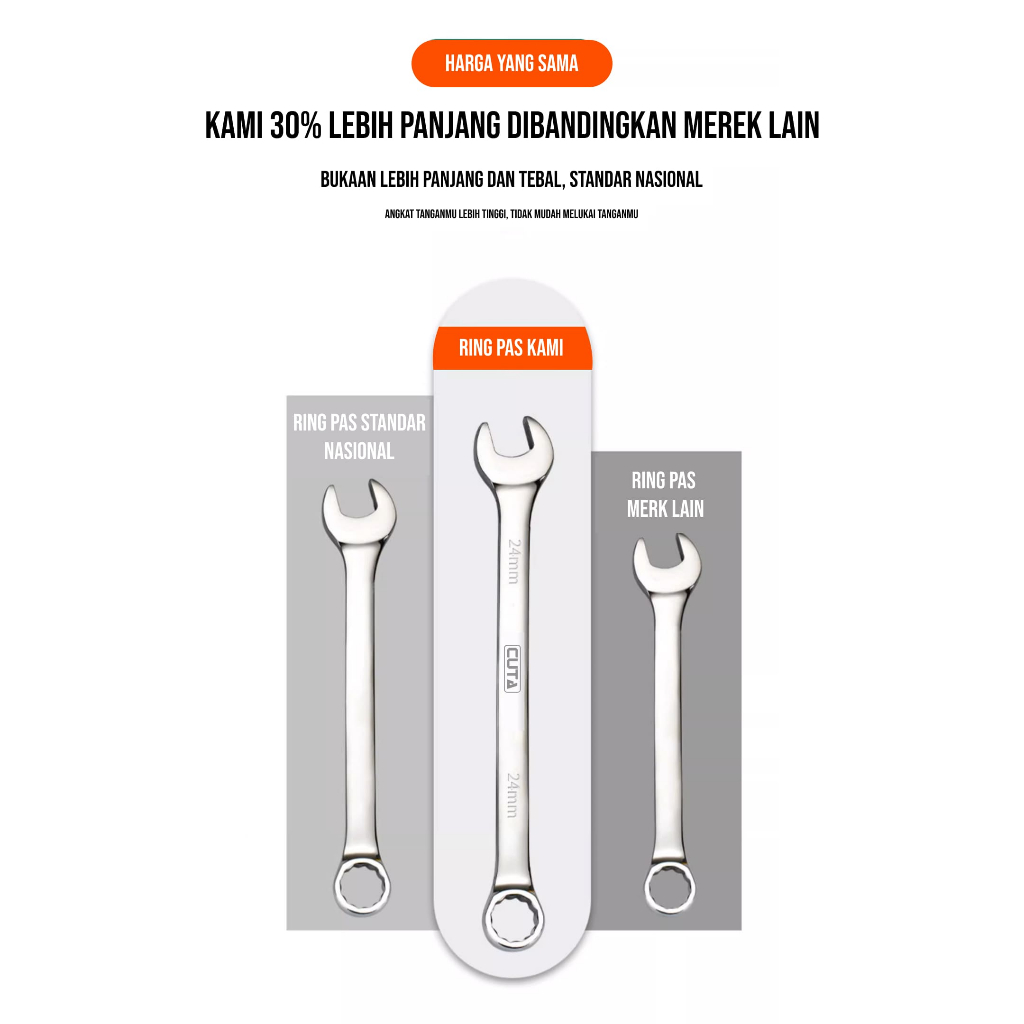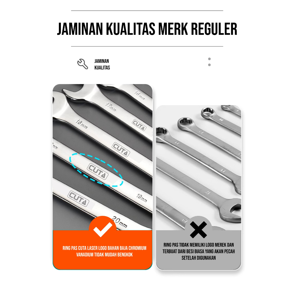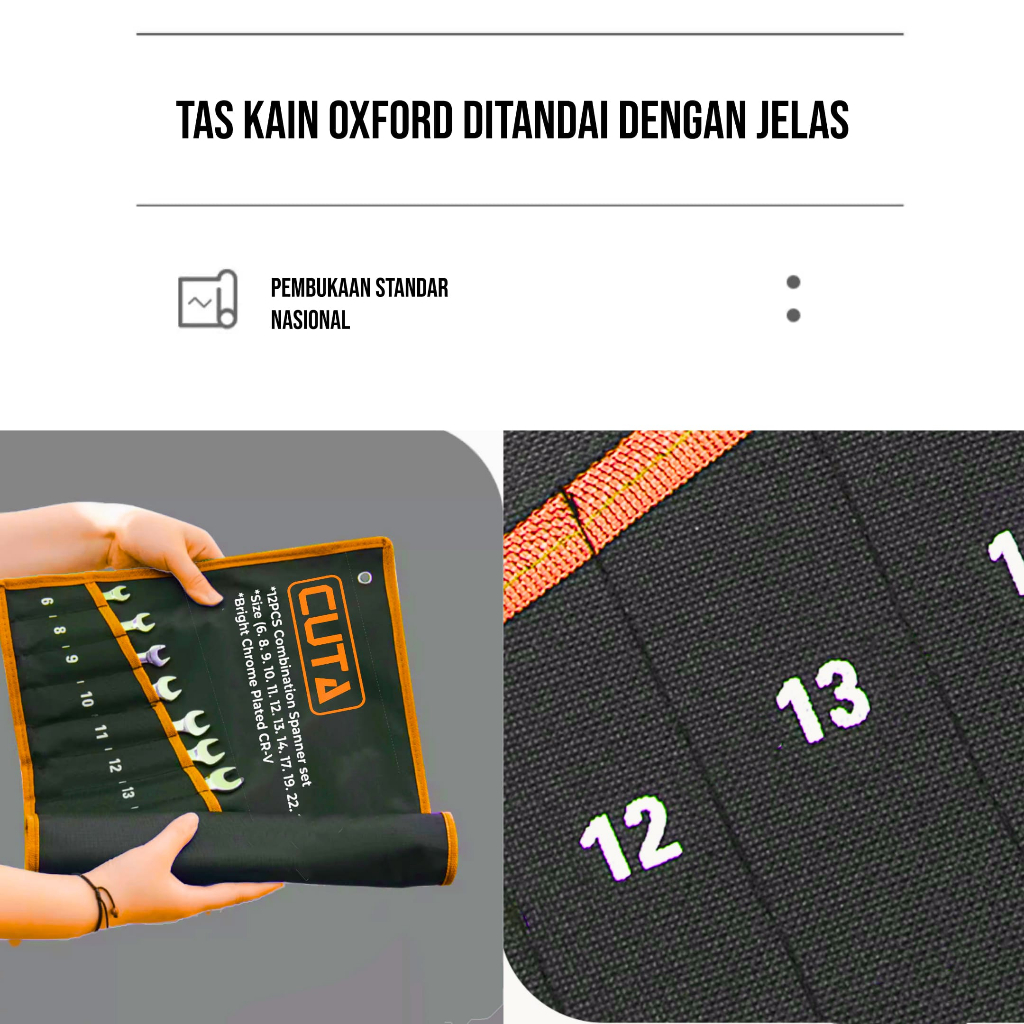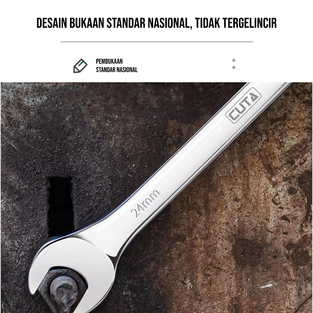 CUTA Kunci Ring Pas Set 12Pcs 6-24mm CR-V Kunci Pas Ring Set Kombinasi Spanner Mirror Finishing
