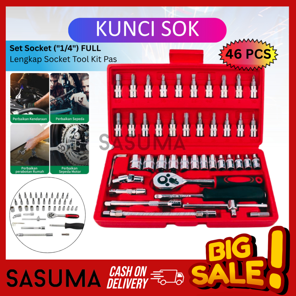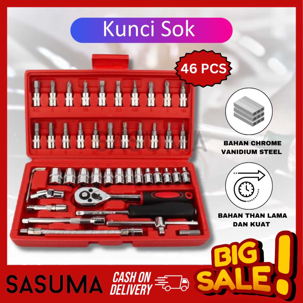 SASUMA Set Kunci Sok Kunci Shock 46 pcs Mobil Motor Lengkap Socket Tool Kit set Pas Ring Motor Mobil