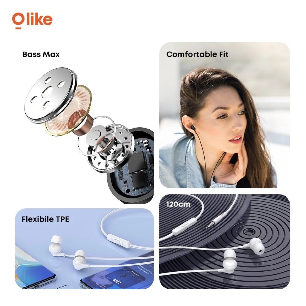 OLIKE E30S Headset Handsfree 3.5mm Wired Earphone Mic Android iPhone E30S Ready