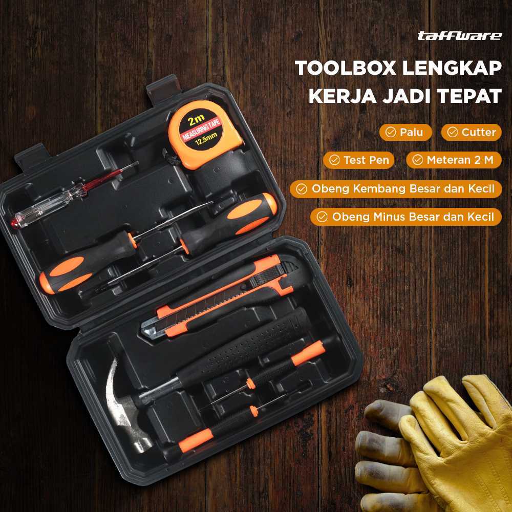 Taffware Alat Set Perkakas Palu Obeng Cutter Meteran 8 in 1