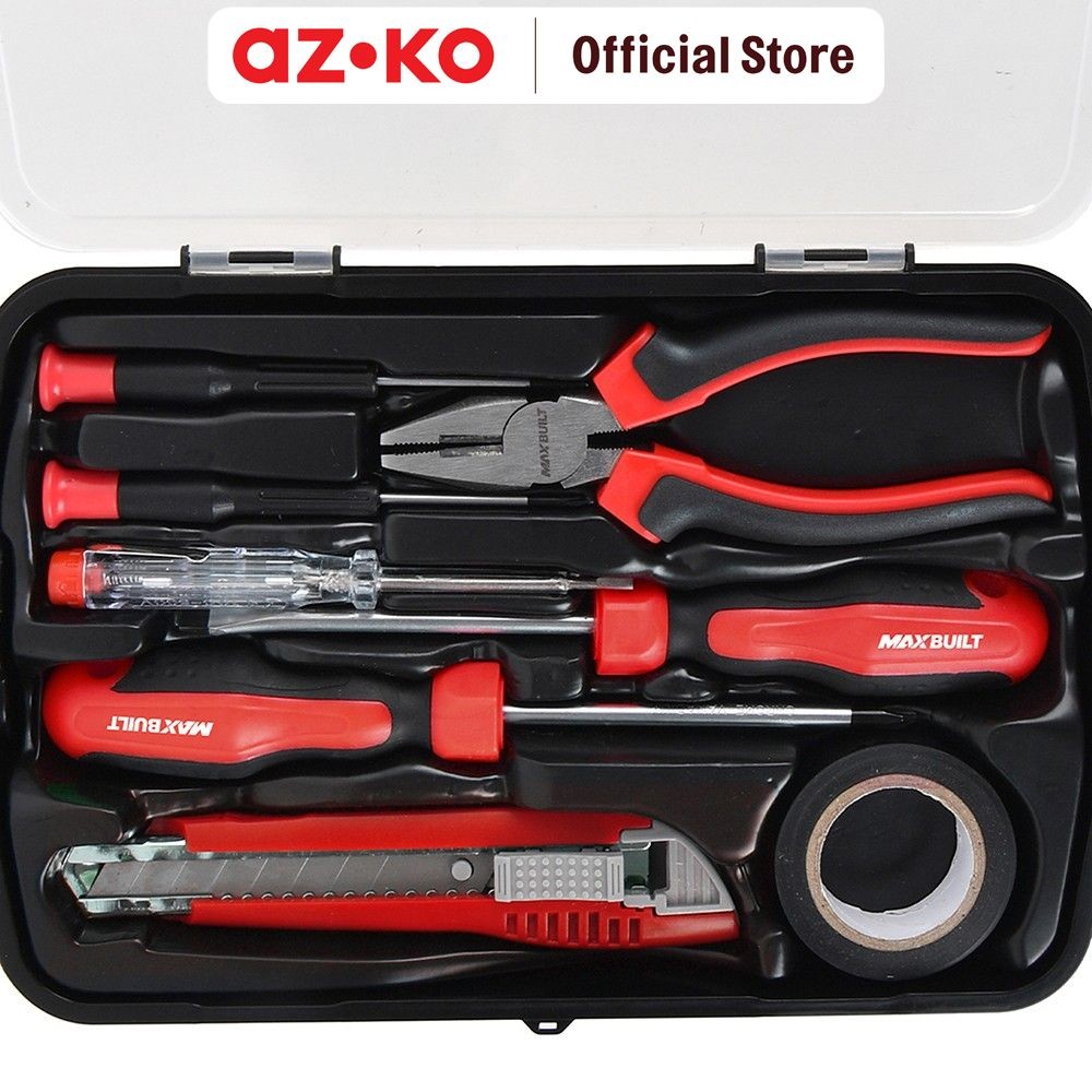 AZKO Maxbuilt Set 8 Pcs Perkakas Rumah Tangga - Merah Set Tool Kit Multipurpose Hand Tool Perkakas Bengkel Tukang