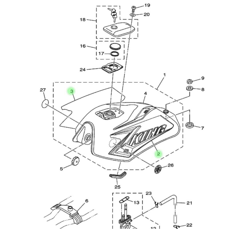 STRIPING STICKER STIKER TANGKI KIRI DAN KANAN RX KING 2008 HITAM ORIGINAL YAMAHA 3KA-F4244-A0 / 3KA-F4245-A0