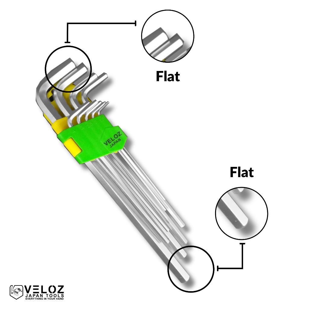 VELOZ Kunci L Set Flat Flat 9pcs (Panjang) / Kunci L Set FLAT - FLAT EXTRA LONG / TOOLS - Alat Perkakas / KUNCI L SEGIENAM SET PANJANG