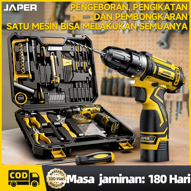 JAPER bor baterai 120PCS Tool Box Large Drill Machine BatteryToolkit Complete Builder Tool Set