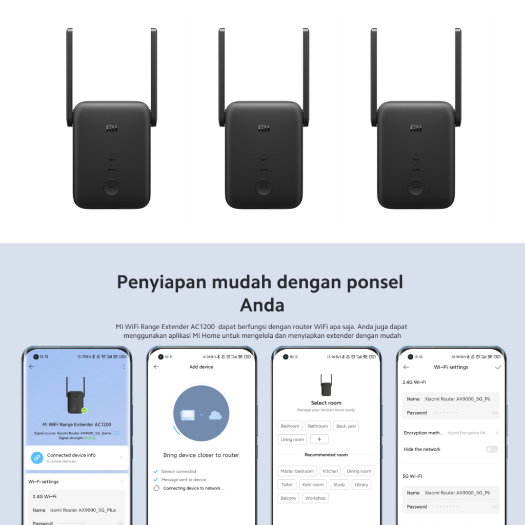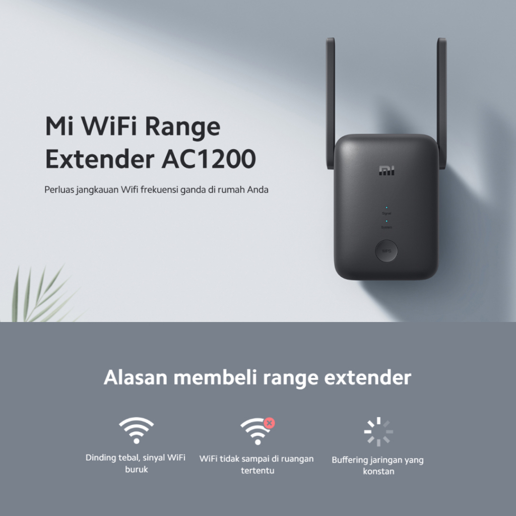Xiaomi WiFi Range Extender AC1200 | 2 Eksternal Antena | Dual-band 2,4 GHz dan 5 GHz | Kecepatan Hingga 1200Mbps
